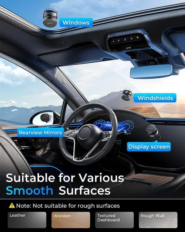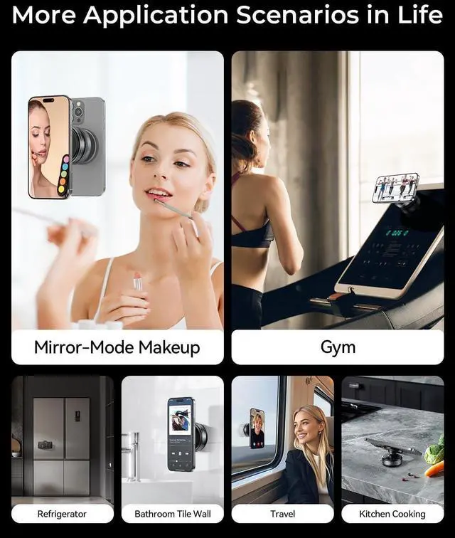 Tips: This vacuum magnetic phone holder can only be attached to smooth surfaces such as the front windshield or central screen of a car when used as a car phone holder and cannot be attached to the dashboard. This phone can also be used in kitchens bathrooms living rooms gyms and other places.??