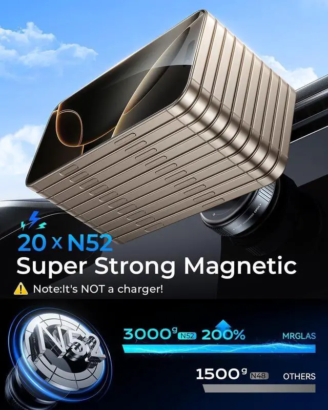Irresistible Magnetic Force: Built with 20 high-performance N52 magnets this magsafe suction phone mount delivers unparalleled magnetic strength to keep your device securely in place even on the most bumpy terrains. After passing 5000 vibration tests and extreme road simulations you can rest assured that your phone will stay firmly in place even under severe conditions. Wide Compatibility and