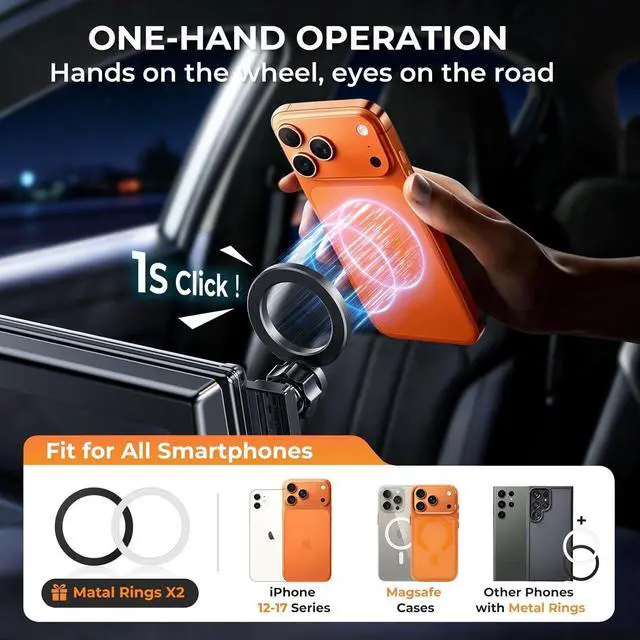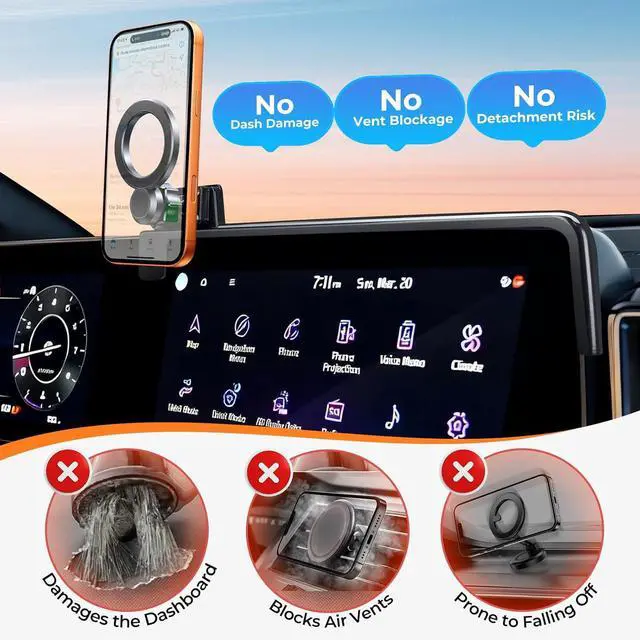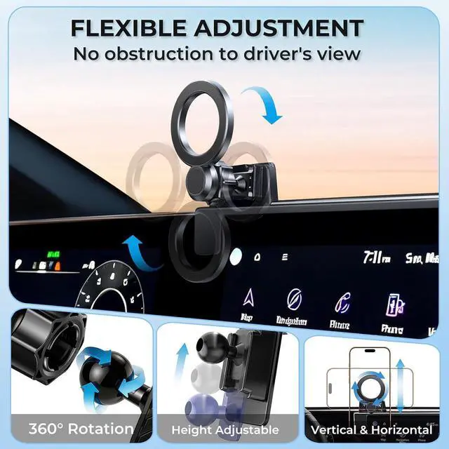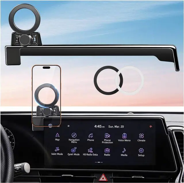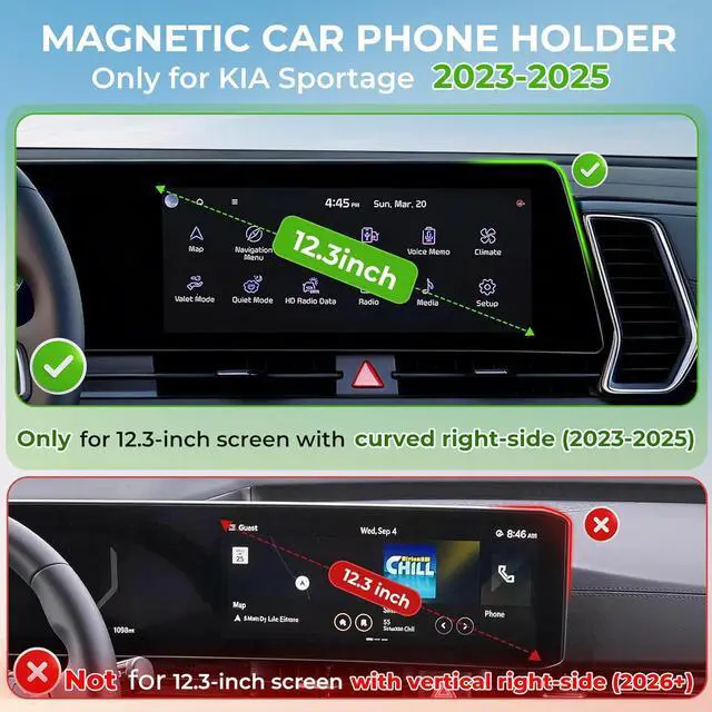 Unlike suction cup or adhesive mounts or vent mounts that damage your dashboard or air vents this screen-mounted holder fits your vehicles screen contour perfectly and grips securely without shaking. It wont harm your original interior and leaves no residue when removed. WIDE COMPATIBILITY - The 360° rotating magnetic phone mount designed for kia sportage 2023-2025 ( 12.3 -inch screen) compatible with magsafe works with all smartphones. It can be used directly if your phone has the feature for magsafe or the case for magsafe. For non? magnetic phones and cases we include 2 upgraded magnetic metal rings.