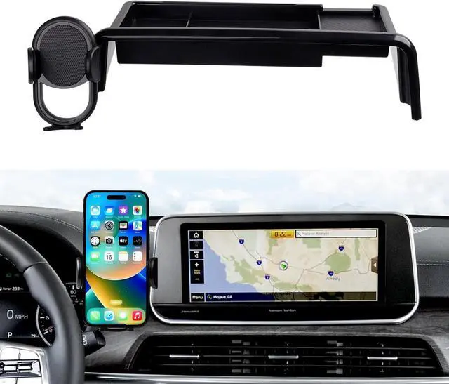 Vehicle Specific---This phone holder with dash organizer is custom fit for 2020 2021 2022 KIA Telluride with 10.25 -inch touchscreen. Adapt to 4.7 - 6.7 inch phones. Please make sure it meets your need before purchasing. Upgrade New Design---Different from ordinary cell phone holders ours has an integrated design of touchscreen and phone stand which does not block the air outlet. Real one-hand operation you can use your phone just by one hand. The pivoting ball joint of the phone mount can rotate 360 degree easily switch the phone to any angle. Extra Storage---The phone holder with a dashboard insert tray makes full use of every inch of space in your dashboard.