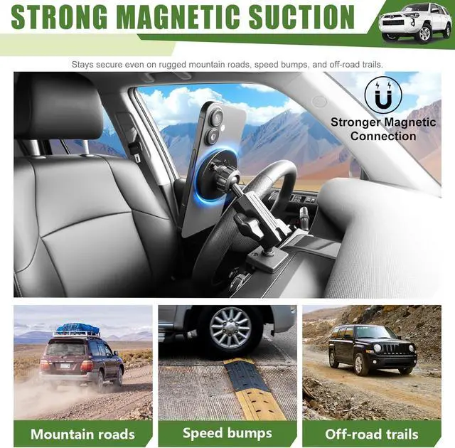 MAGNETIC: Equipped with a high-strength magnetic ring it provides strong adsorption force keeping the phone stable even on rough off-road terrain.