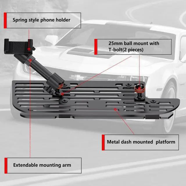 COMPATIBILITYOur dashboard phone holder Compatible with RAM Truck 2019+ 1500 2500 3500 and TRX with 25mm Ball Head Adapter. MULTI FUNCTIONAL DUAL SOCKET ARMThe total length of the dual socket rotating arm is 6 inches to 8 inches and can be extended by rotation. A 25mm ball head adapter suitable for all industry standards it is an ideal choice for installing smartphones/GPS devices/cameras and can be quickly and easily connected to installation fixtures. PHONE HOLDERMobile phone holder with ball head 1'' Ball head adapter is compatible with RAM stands and B-size dual socket arms the spring phone holder is suitable for smartphones with a length of 1.9 '' to 3.7 '' and thickness not exceeding 0.78 inches.