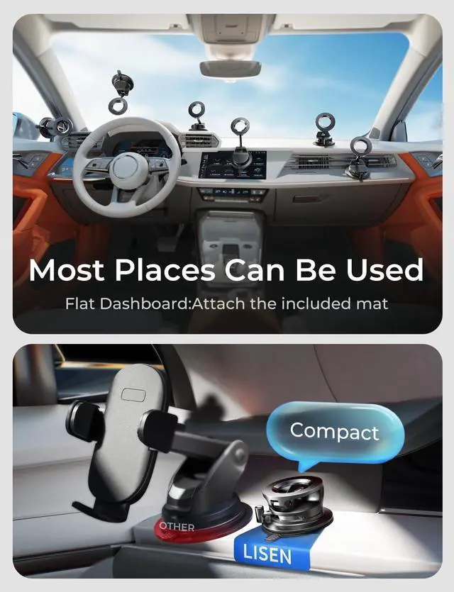 Important Installation Information: If this magsafe car mount detaches in high temperature conditions simply reattach it to restore function. Do not use this magnetic car phone holder on surfaces with large particles textures or curves. If the suction cup of this magnetic car phone holder loses stickiness rinse with water and air dry (do not wipe with paper towels). Strengthened Vacuum Suction Cup with Lever Lock EnhancementFeaturing reinforced vacuum suction and a lever lock mechanism this FCC radio equipment delivers the ultimate physical suction power. Unlike sticky mounts this Audio monitoring equipment offers a quick-release design for easy repositioning without leaving any residue. The more it is shaken while driving the firmer the suction becomes. The ideal magnetic car phone holder.