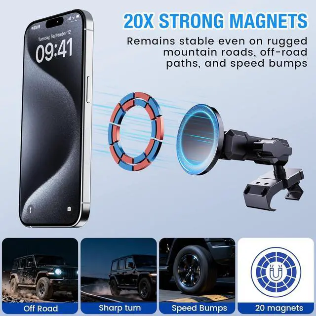 Ultra Magnetic Hold: With 20 magnets this cell phone mount provides super-strong holding power keeping your phone still and steadily even on the bumpiest roads. The enclosed magnetic field wont interfere with your phones signal so you can use navigation and other functions with ease.