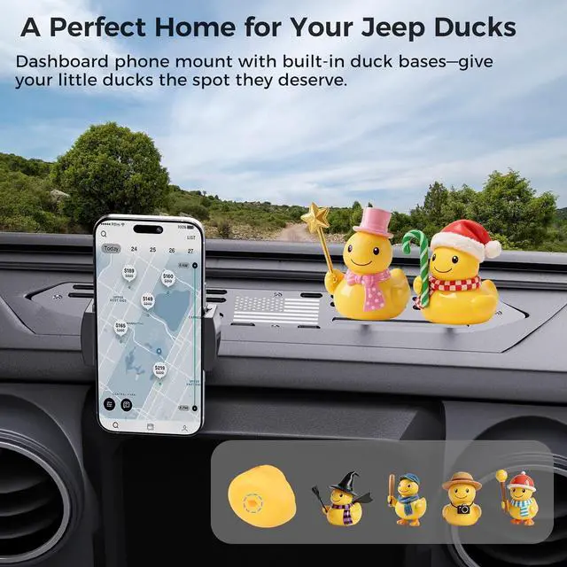 MULTIFUNCTION SYSTEM: The DIAMOOKY metal dash mount features a full-metal base that securely holds your phone. Rock solid you no longer have to worry about your devices falling off. Plus it comes with 2 duck mountsperfect for displaying the little yellow ducks youve collected!