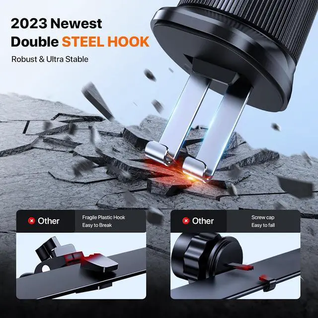 HOOK AIR VENT CLIP: Based on the feedback from more than 300 000 customers we have further improved our car phone holder. Upgraded its structure especially improved the retractable double metal clip hook so that this phone holder is tightly fixed on the vent more stable and firm hold the phone more firmly never fall off and never break. This car phone holder can work better for you