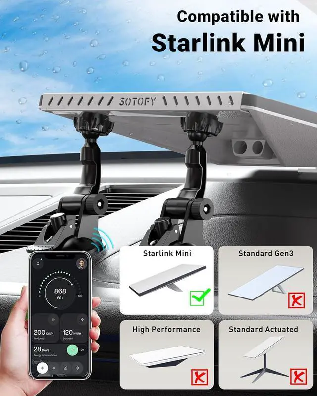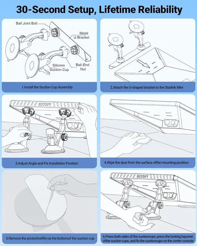 Advanced Triple-Layer Nano Suction: Our upgraded starlink suction cup mount uses triple-layer nano gel and a vacuum lock for 50% more suction power than standard designs. the starlink mini mount suction cup holds firmeven on bumpy roads. Weatherproof ReusableWith resistance from -44°F to 194°F this starlink mini dashboard mount wont warp or leave residue. Simply rinse the suction pads to restore stickinessperfect for repeated use in different vehicles including trucks and off-road conditions.