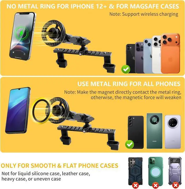 PHONE MODELS: For GMC Sierra magnetic phone mount uses smart magnetic attraction points can automatically match Magnetic phones/Magnetic cases. You can directly use it with Magnetic phones (for iPhone 12 to iPhone 17) and Magnetic cases. Other phones or ordinary phone cases you need to use it with metal ring20X