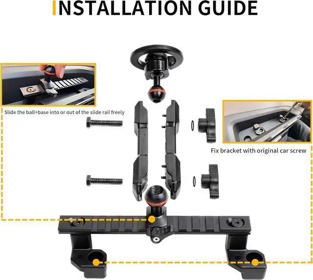 ADJUSTABLE: For Sierra 1500 phone mount adopts double balls support can be 360 ° adjusted to meet your driving needs; uses 6-inch slide rail can slide left and right to meet the needs of passengers and drivers can also add a phone or camera mount to meet more needs. It can provide you with a great usage experienceEXCELLENT