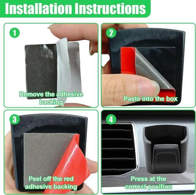 Wide Range of Uses: This car storage box has a wide range of applicability. It is not only suitable for most vehicle models but also for positions such as the front door air outlet and trunk. It is also suitable for smooth surfaces of refrigerators desks bedside tables glass wooden furniture etc.