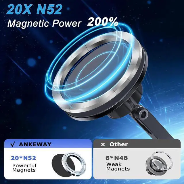 Note: After attaching the metal ring please press firmly and wait 2 hours before use. When removing the phone lift it by one side first to prevent the metal ring from being pulled off due to the strong magnetism. Suitable for All PhonesThis magnetic phone holder is compatible with all smartphones. iPhone 17/16/15/14/13/12 series phones can be directly attached to the holder. For non-MagSafe phones and cases a metal ring is provided. After attaching your phone/phone case will adhere properly to the stand.
