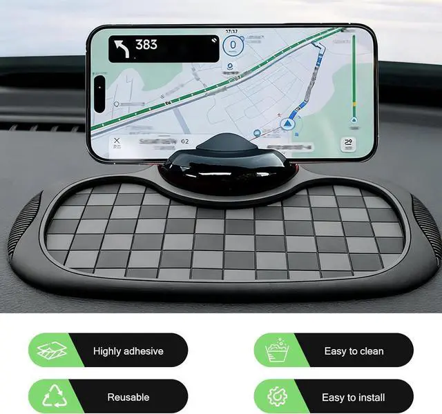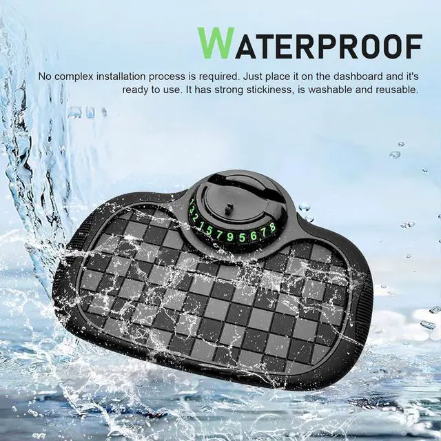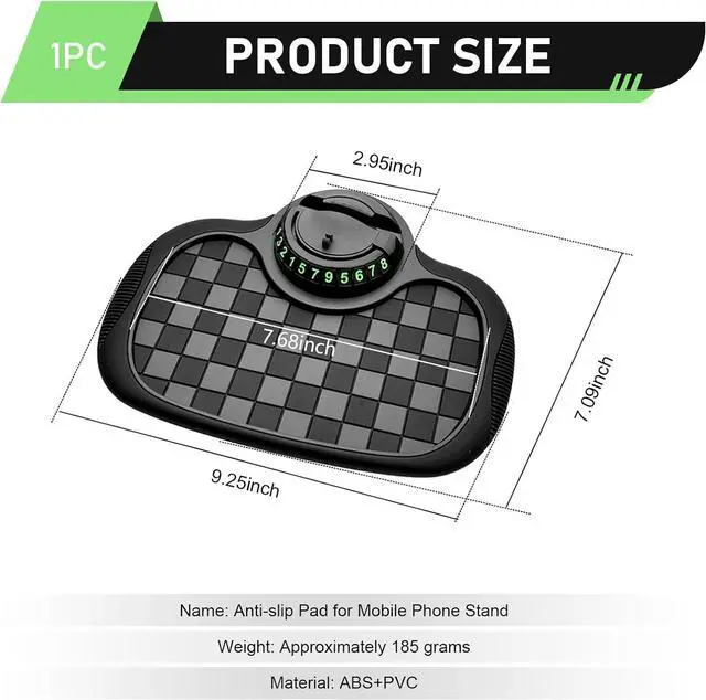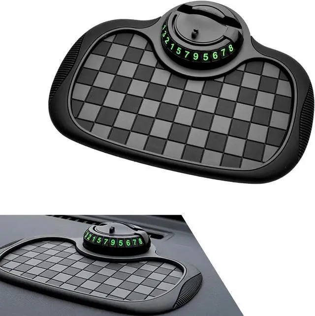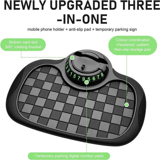 Multifunctional Design: The car anti-slip mat serves as a 4-in-1 car essential: a strong-grip dashboard mat to stop items from sliding an adjustable phone holder a privacy-protected parking number and a storage pad for your keys and sunglasses keeping your car organized.