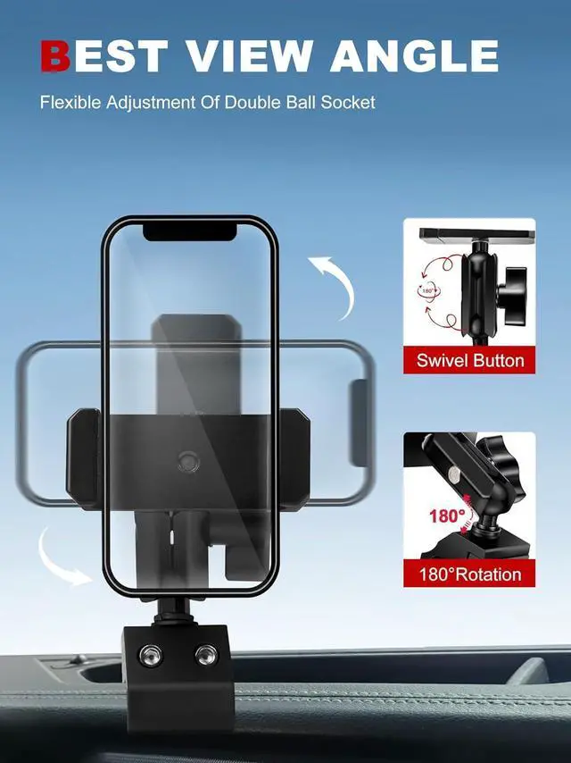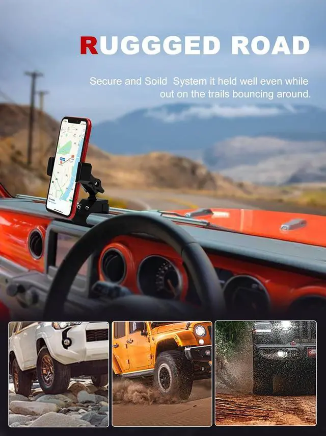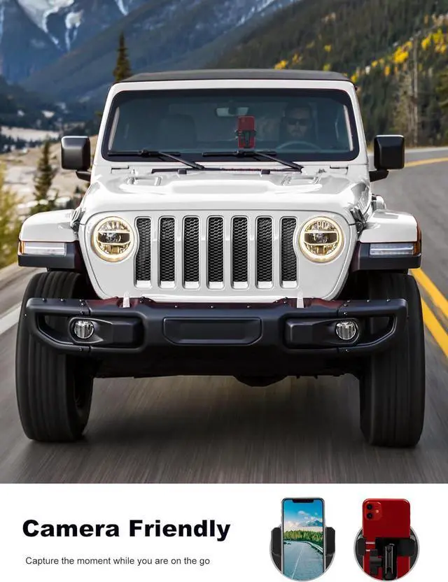 Note: {NOT FIT 2024 -Present Jeep models & 2011-2018 Wrangler JK & JKU} It also is compatible with smartphones ranging from 4.7 to 6.8. The mounts maximum grip width is 0.78 inches making it unsuitable for phones with cases that exceed 0.78 thickness. such as iPhone 14/14 pro/14 pro max/13/13 pro/13 pro max/12/12 pro/12 pro max/SE/XS/XS Max/XR/X/8/8 Plus Galaxy S21/S20/S10/S9/S8/S7 and More720° Rotation & 360 °