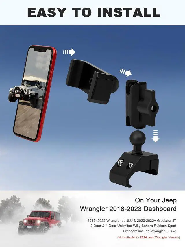 Compatibility: Nilkatss jl cellphone mount for Jeep Wrangler is only designed for Jeep Wrangler JL JLU 2018 2019 2020 2021 2022 2023 & 2020 2022 2023 Gladiator JT.