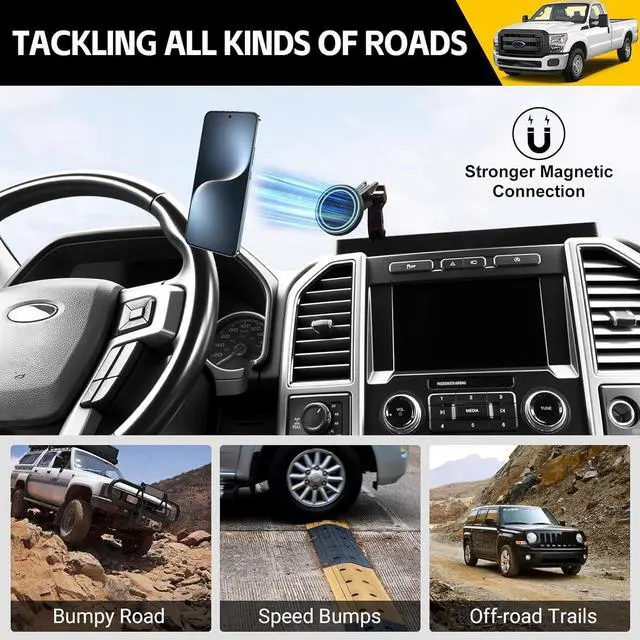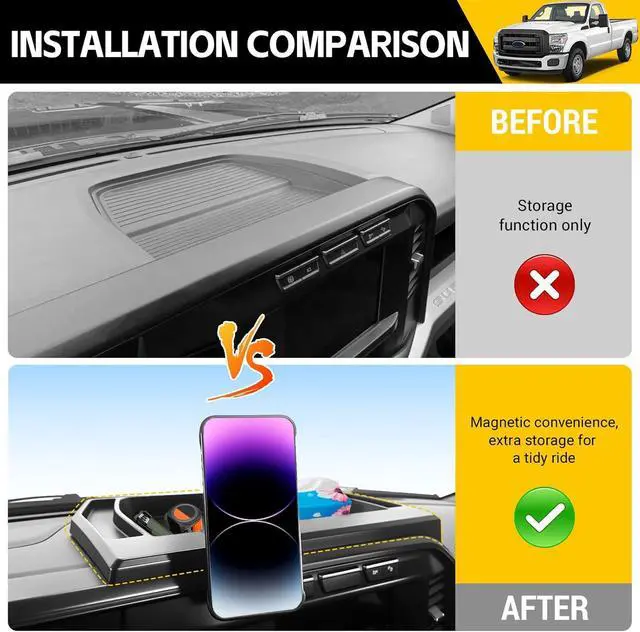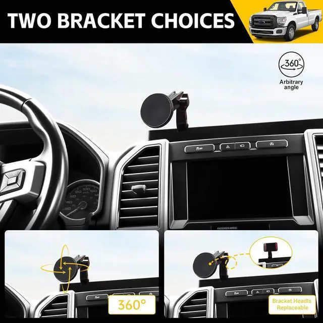 Perfect FitJTYZSM magnetic phone holder is engineered specifically for 2023 2024 2025 2026 Ford F-250 F-350 F-450 Super Duty((without Dashboard-Top Speaker) Only. Please verify your truck model is compatible before ordering. Strong MagneticBoasts a powerful magnetic design for instant secure attachment. Your phone stays firmly in place even on bumpy roads or during sudden braking. Custom DesignedUnlike universal holders this includes a custom-fitted base that integrates seamlessly with your truck's dashboard adding functionality without clutter. Flexible 360° AdjustmentThe adjustable ball head allows you to rotate your phone to any viewing angleportrait or landscapefor optimal visibility and ease of use.
