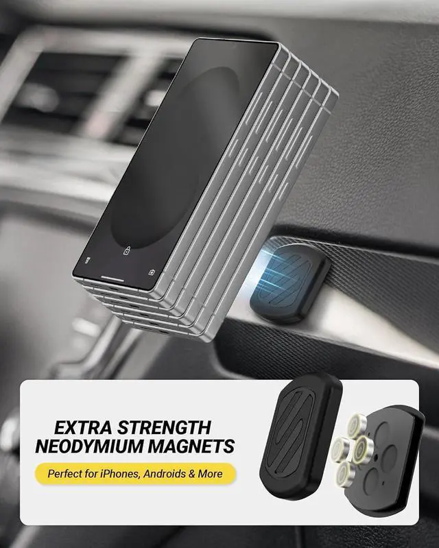 Placement: For best hold apply the included MagicPlate to your phone or case and wait 24 hours before mounting. This magnetic car cell phone holder for iPhone and Android requires the metal plate to work. NOT compatible with MagSafe-only cases or phonesWhat