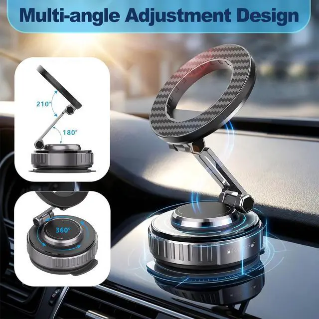Powerful Magnetism & Anti-Deformation Stability: The innovative dual-layer N55 magnet design delivers 320% stronger magnetic force than standard mounts generating up to 3 000 gauss (GF) powerful enough to support 60 mobile phones. Your phone locks instantly on contact staying securely in place even during sudden stops or rough mountain roads. The top toothed inner ring paired with reinforced structural supports prevents warping and edge lifting that plague ordinary plastic mounts over time ensuring a flat snug fit at all times. Boasting foldable design it folds flat effortlessly when not in use. it slips right into your pocket or backpack for easy portability. Ultra Suction Cup &