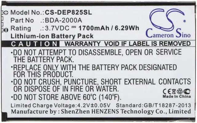 Battery Part Numbers BDA-2000A Capacity: 3.7V 1700mAh / 6.29W h