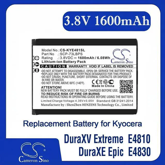 Battery for Kyocera DuraXE Epic DuraXV Extreme E4810 E4830 SCP-73LBPS Mobile Compatible with the following devices DuraXE Epic, DuraXV Extreme, E4810, E4830 Compatible with