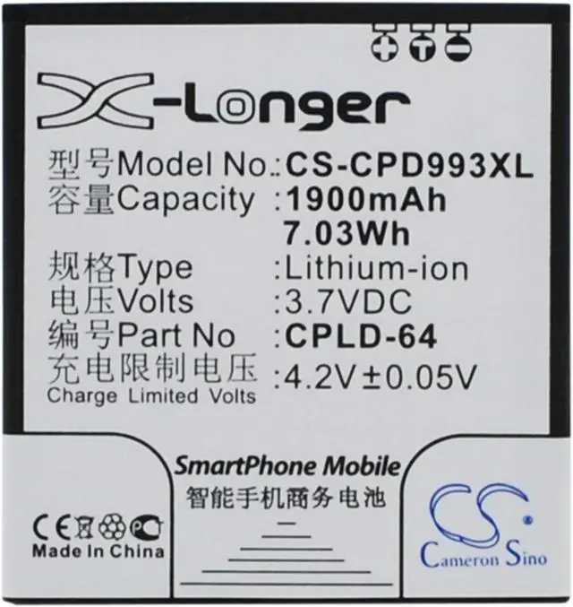 Battery for Coolpad 9930 W702 CPLD-64 Mobile SmartPhone CS-CPD993XL 3.7 v 1900mAh Compatible with the following devices 9930, W702 Compatible with