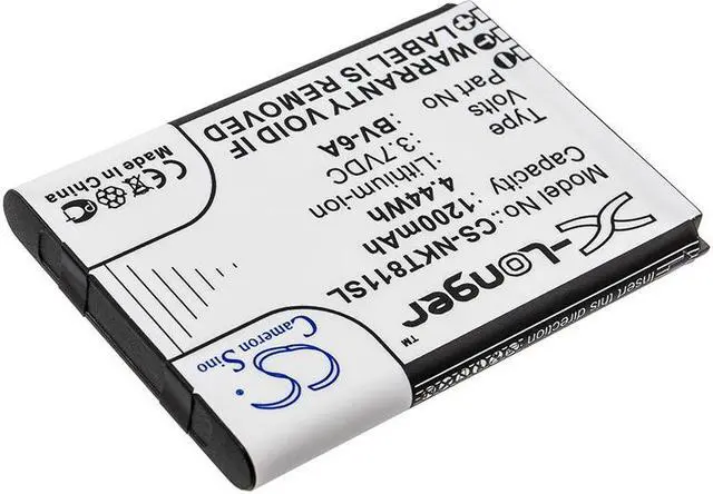 Battery Part Numbers BV-6A Capacity: 3.7V 1200mAh / 4.44W h
