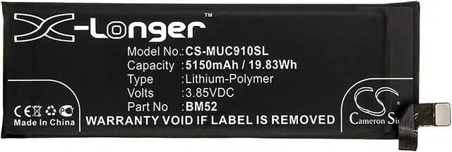 Battery Part Numbers BM52 Capacity: 3.85V 5150mAh / 19.83W h