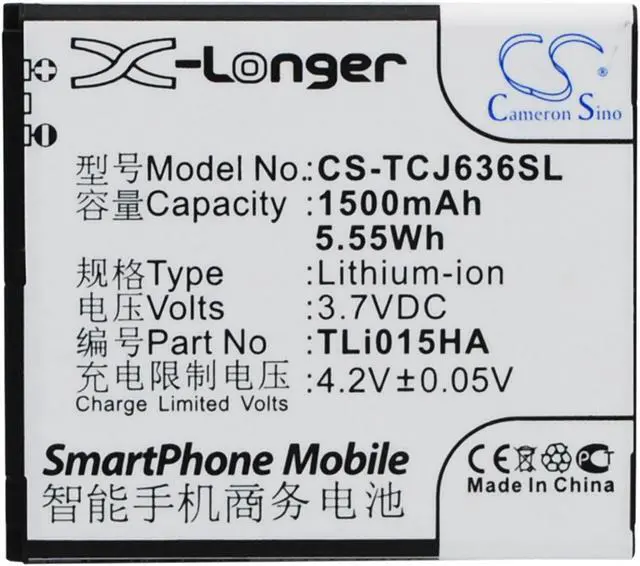 Battery for TCL J636D TLi015HA Mobile SmartPhone CS-TCJ636SL 3.7 v 1500mAh / Compatible with the following devices J636D Compatible with