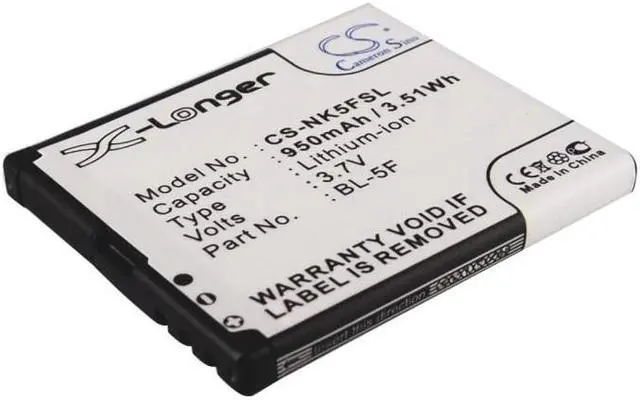 Battery for Nokia 6210 Navigator 6290 6710 Navigator C5-SCDMA E65 N93 N93i N93i Compatible with the following devices 6210 Navigator, 6290, 6710 Navigator, C5-SCDMA, E65, N93, N93i, N93i RM-156, N93i RM157, N95, N96, X5, X5-01, X5-SCDMA, Bea-fon S30, S31, S31 EU001B, Myphone 9025, 9025 TV, 9025TV, 9025TV Moon Compatible with Battery Part Numbers BL-5F, Bea-fon BL-5F, Myphone