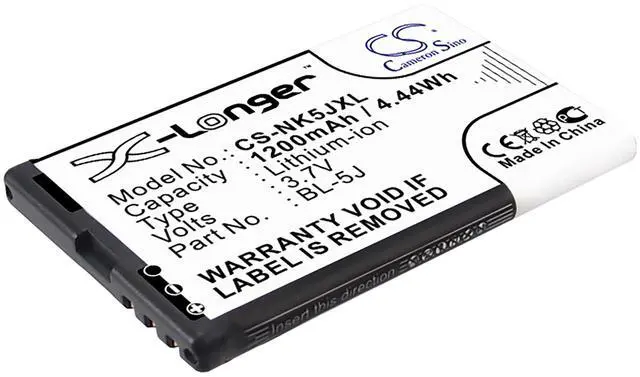 Battery Part Numbers BL-5J Capacity: 3.7V 1200mAh / 4.44W h