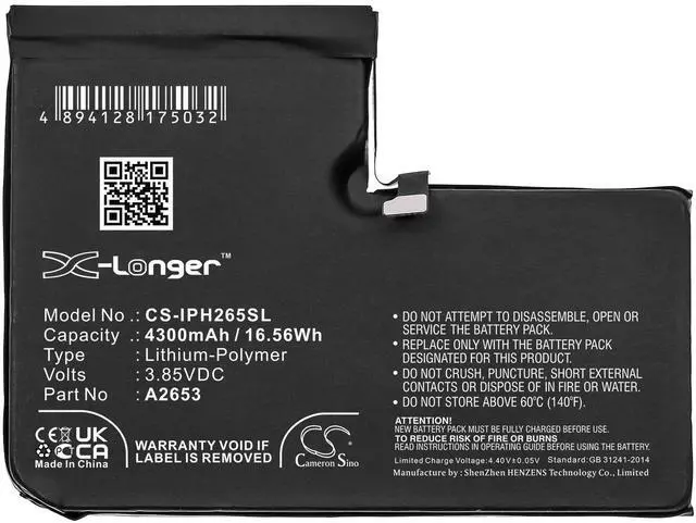 Battery Part Numbers A2653X-Longer Capacity: 3.85V 4300mAh / 16.56W h