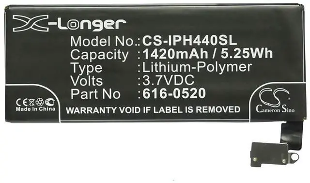 Battery for Apple iPhone 4G iPhone 4G 16GB iPhone 4G 32GB 616-0512 616-0520 Compatible with the following devices iPhone 4G, iPhone 4G 16GB, iPhone 4G 32GB Compatible with Battery Part Numbers 616-0512, 616-0520, 616-0521, GB-S10-423482-0100X-Longer