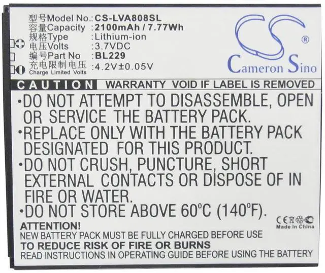 Battery Part Numbers BL229 Capacity: 3.7V 2100mAh / 7.77W h