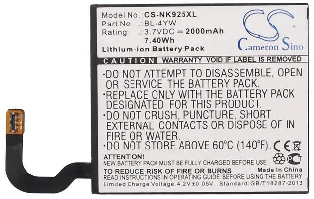 Battery for Nokia Catwalk Lumia 925 Lumia 925.2 Lumia 925T BL-4YW Mobile Compatible with the following devices Catwalk, Lumia 925, Lumia 925.2, Lumia 925T Compatible with Battery Part Numbers Nokia Microsoft BL-4YWX-Longer Capacity: 3.7V 2000mAh / 7.40W h