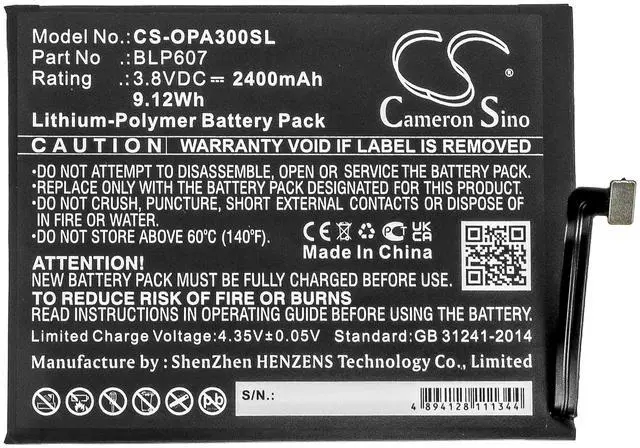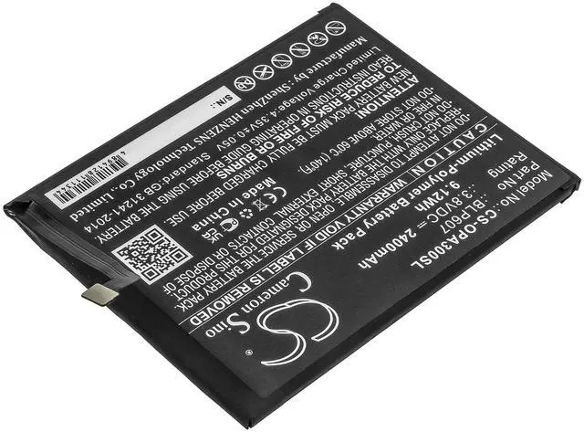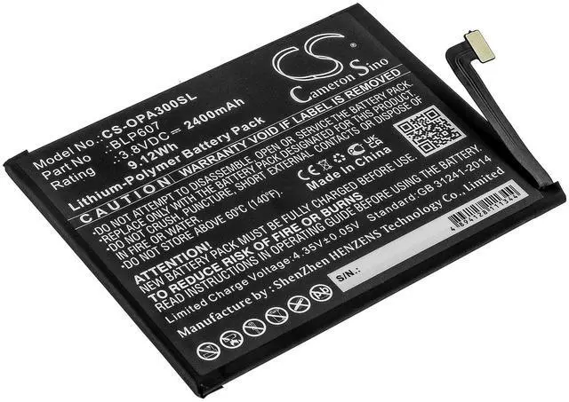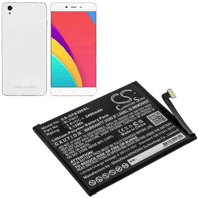 Battery for OPPO A30 A30 Dual SIM TD-LTE Oneplus E1000 E1001 E1005 Oneplus X X Compatible with the following devices A30, A30 Dual SIM TD-LTE, Oneplus E1000, E1001, E1005, Oneplus X, X Dual Sim Compatible with Battery Part Numbers BLP607, Oneplus