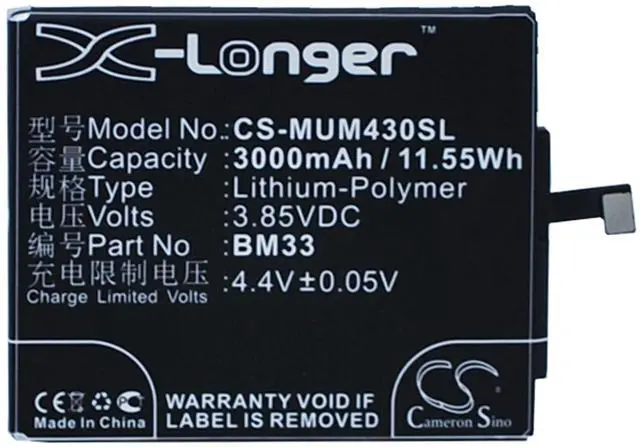 Battery for Xiaomi M4i X9 BM33 Mobile SmartPhone CS-MUM430SL 3.85 v 3000mAh / Compatible with the following devices M4i, X9 Compatible with