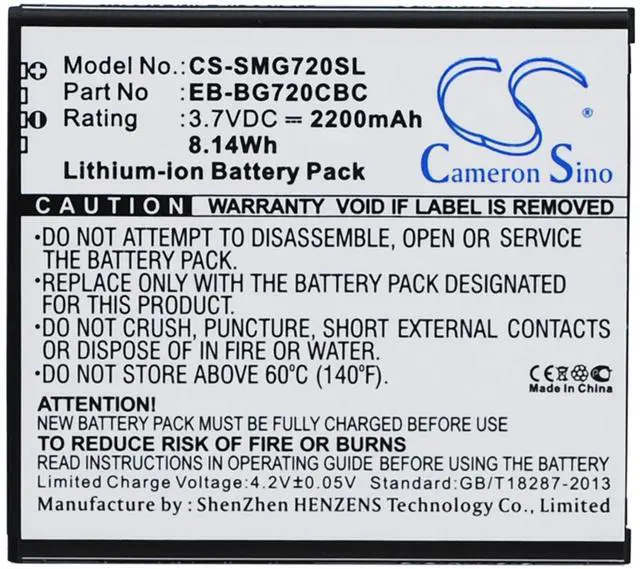 Battery for Samsung Galaxy Grand 3 Galaxy Grand 3 Duos Galaxy Grand Max SM-G7200 Compatible with the following devices Galaxy Grand 3, Galaxy Grand 3 Duos, Galaxy Grand Max, SM-G7200, SM-G7202, SM-G7202D, SM-G720AX, SM-G720N0 Compatible with Battery Part Numbers EB-BG720CBC, EB-BG720CBK