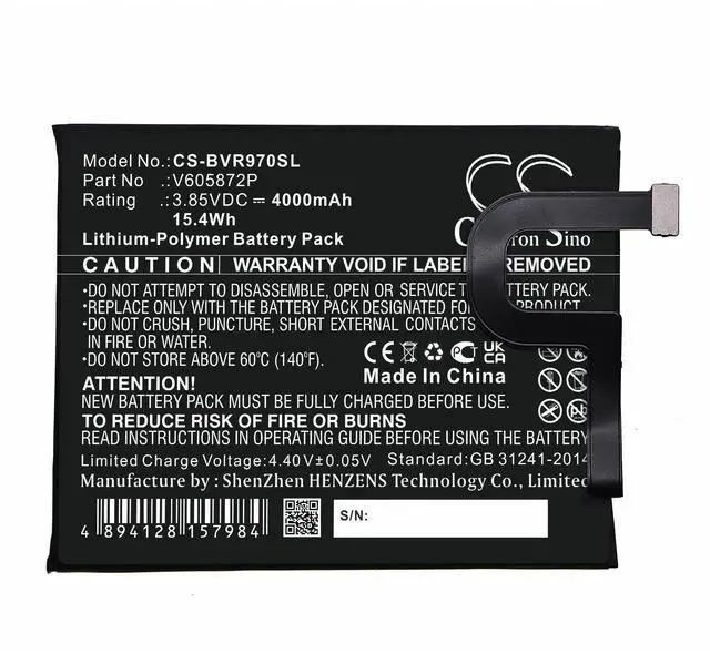 Battery Part Numbers V605872P Capacity: 3.85V 4000mAh / 15.40W h