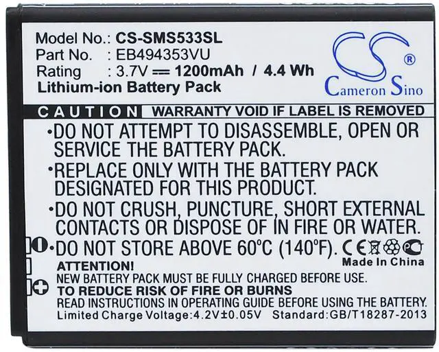 Battery for Samsung Dart DoubleTime Galaxy 551 Galaxy Mini Galaxy Mini TM Galaxy Compatible with the following devices Dart, DoubleTime, Galaxy 551, Galaxy Mini, Galaxy Mini TM, Galaxy Player 4.0, Galaxy Pocket Neo, Galaxy POP, Galaxy Pop i559, Galaxy S Mini, Galaxy S Wi-Fi 4.0, Galaxy Star, Galaxy Txt, Galaxy Y Pro Duos, GT-i5510, GT-I5510M, GT-S5250, GT-S5280, GT-S5310G, GT-S5330, GT-S5570, GT-S5750, GT-S5750E, GT-S7230, GT-S7230E, Habrok, Next Pop 551, SCH-I509, SCH-i559, SGH-i857, SGH-T499, SGH-T499V, SGH-T499Y, SHV-E220, SHV-E220S, Superior, Tass, Wave 533, Wave 575, Wave 578, Wave 723, Wave I559, YP-G1, YP-G1C, YP-G1C/XSH Compatible with Battery Part Numbers EB494353VA, EB494353VU
