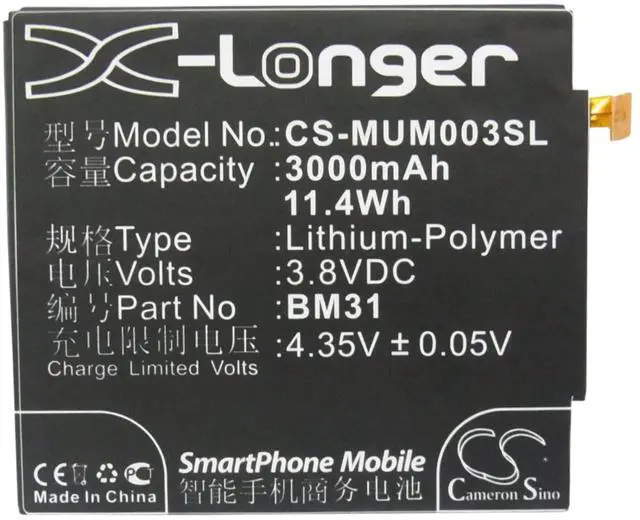 Battery Part Numbers BM31 Capacity: 3.8V 3000mAh / 11.40W h