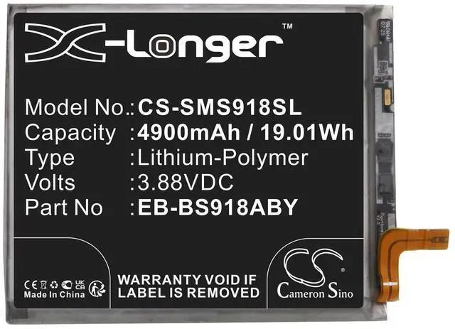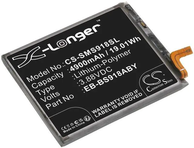 Battery for Samsung Galaxy S23 Ultra Galaxy S23 Ultra 5G SC-52D SGH-N795 Compatible with the following devices Galaxy S23 Ultra, Galaxy S23 Ultra 5G, SC-52D, SGH-N795, SM-S9180, SM-S918A, SM-S918B, SM-S918B/DS, SM-S918D, SM-S918J, SM-S918N, SM-S918Q, SM-S918R4, SM-S918T, SM-S918U1, SM-S918V, SM-S918W Compatible with Battery Part Numbers EB-BS918ABY, GH82-30459AX-Longer