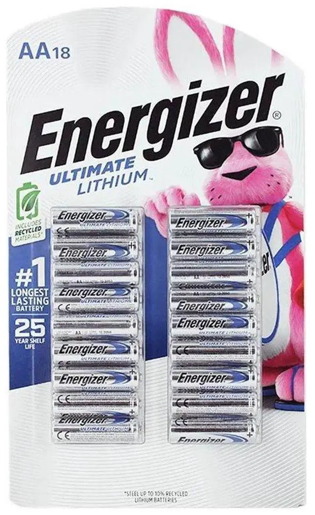 Choose your Pack - Energizer Ultimate Lithium AA BatteriesEnergizer Ultimate Lithium AA batteries are the world's longest lasting AA batteriesSuperior performance in extreme temperatures from -40 degrees F to 140 degrees F ensure reliable use in all seasonsThese double A batteries are leak proof batteries, guaranteed based on standard useLightweight household batteries last up to 20 years in storageUse in high tech items, like digital cameras or game controllers, and household items such as smoke detectors, toys and gamesFeel confident knowing you have the long-lasting lithium power and protection you expect from Energizer