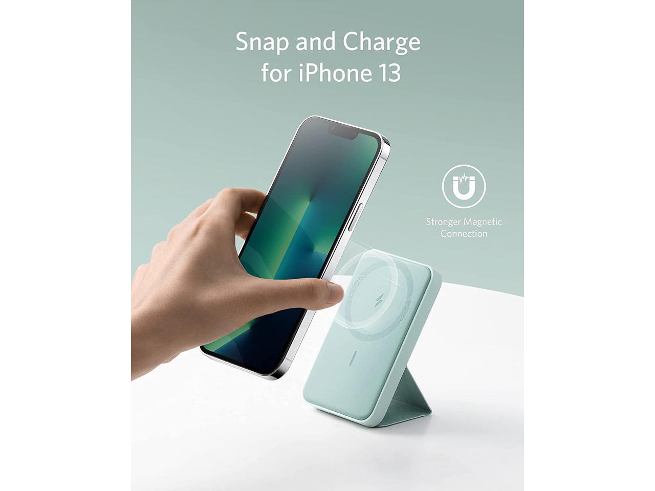 Anker 622 Magnetic Battery (MagGo), 5000mAh Foldable Magnetic Wireless Portable Charger and USB-C for iPhone 14/13/12 Series (Buds Green)