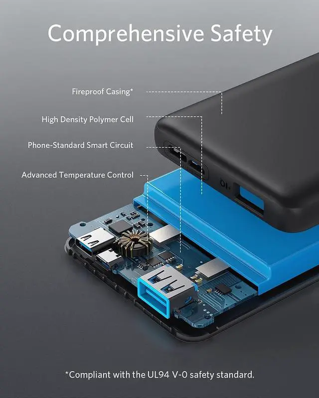 Anker 313 Power Bank is incredibly slim and light for its large cell capacity. It can charge a phone up to three times and most tablets once. Weighing just half a pound, it's only slightly heavier than a baseball and is designed to fit comfortably in your palm or pocket; perfect for work or traveling.
