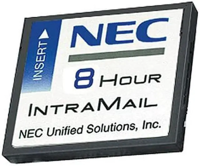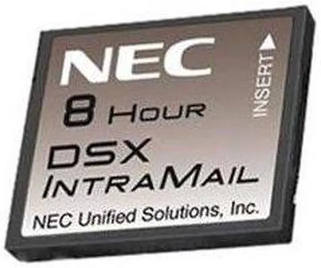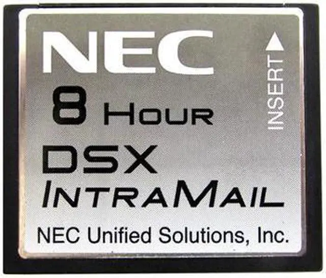- Intramail 2X8 CompactFlash- Use with DSX 40, DSX 80, and DSX 160 systems - 2 Voicemail ports- 8 Hours message storage- Up to 160 mailboxes- Plugs into DSX40 KSU or DSX80/160 CPU card- Routing Mailboxes: 16- Ring Group Mailboxes: 8- Subscriber Mailboxes: 128- UCD Group Mailboxes: 8 _DELETE_