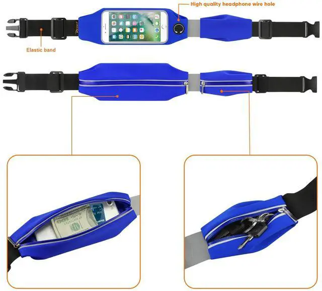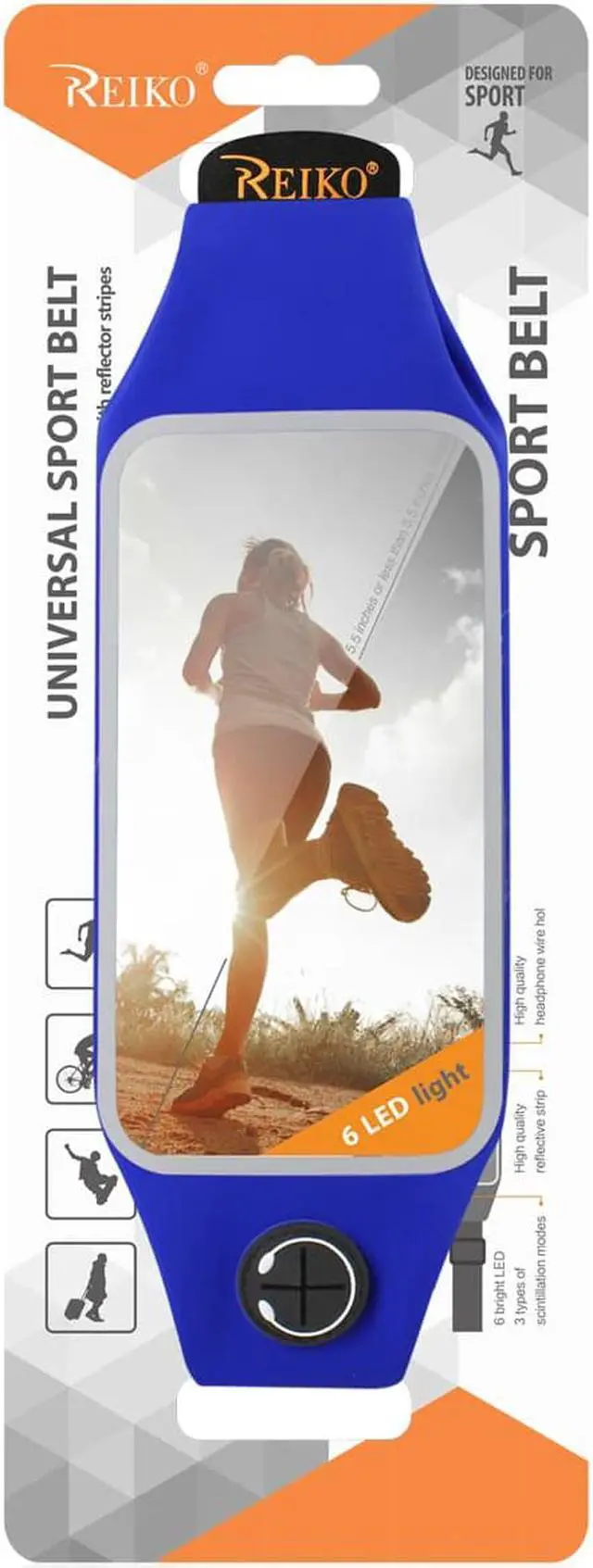 Reiko Running Sport Belt For iPhone 7 Plus Or 5.5 Inches Device With Two Pockets And LED In Blue