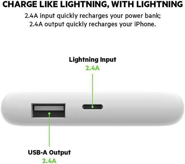 Style: 5000 mAhDesigned for Apple devices, the Boost Charge Power Bank with Lightning Connector is the first-to-market MI-certified power bank to recharge via Lightning connector, allowing you to use the same cable to charge the Lightning power bank, as you use to charge your iPhone. A one-cable solution, this small, thin, lightweight power bank is ideal for on-the-go charging and is fully MI-certified to guarantee compatibility with Apple devices. *35 hours of additional battery life claim is based on hours of video playback for iPhone 8. Results may vary.