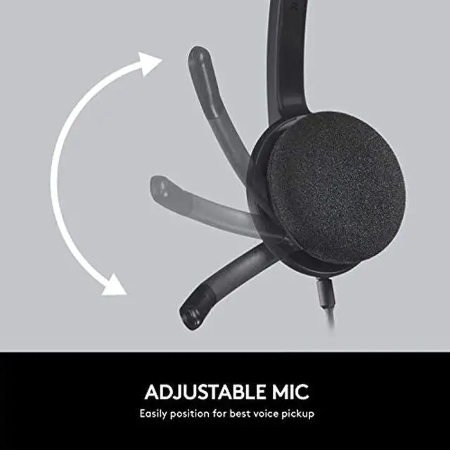 Crystal clear USB audio Bring your voice and video calls and your favorite music to life in high-clarity pure digital sound. Easy on-ear sound controls Boom mic reduces background noise so friends and family hear Rotates to just the right spot for best voice pick up Flips up and hides away when you're not on a call Feel-good fit Enjoy the pure comfort and perfect fit of a lightweight adjustable headband with soft foam ear cups. Compatibility What's in the box USB Headset Documentation Works with Windows or Mac OS USB port Compare Which Logitech Headset Is Right For You? USB Wireless Good Better Best USB Headset H340 USB Headset H360 USB Headset H390 USB Headset H540 Wireless Headset for iPad Wireless Headset H600 Wireless Headset H760 Wireless Headset H800 What do you get? Clear Internet calls and stereo sound Better, clearer laser-tuned audio Enhanced digital audio and comfort Premium digital audio performance and comfort Bluetooth headset for iPad, iPhone, iPod touch Wireless audio for your calls and music Discreet behind-the-head design with plug-and-play wireless Premium Bluetooth headset for your PC, tablet and smartphone Connection choices Corded USB Wireless USB receiver Nano Receiver Nano Receiver Bluetooth Audio quality Noise-cancelling microphone Laser-tuned premium sound Built-in equalizer Comfort and Control Style Over-the-head Behind-the-head Over-the-head Over-the-head Over-the-head Over-the-head Behind-the-head Over-the-head Adjustable Headband Rotating Boom Mic Volume and mute controls On-PC In-line In-line On-ear On-ear On-ear On-ear On ear with added music controls and slider switch for changing from PC to a Bluetooth device Compatibility Windows computers Mac computers For Mac with built-in Bluetooth Tablets, smartphones and other devices with Bluetooth wireless audio profile