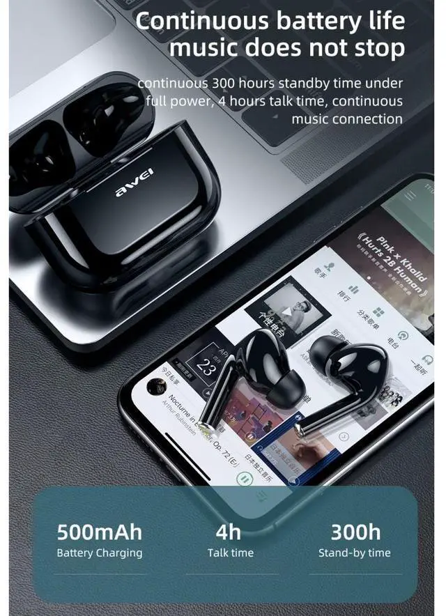 3. Charging compartment battery: 500mAh/3.7V, earbud battery: 45mAh/3.7V