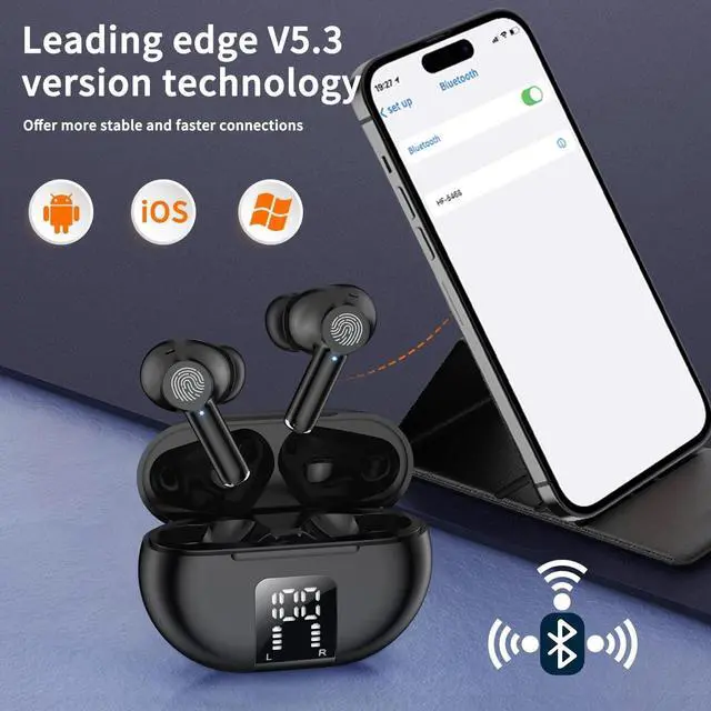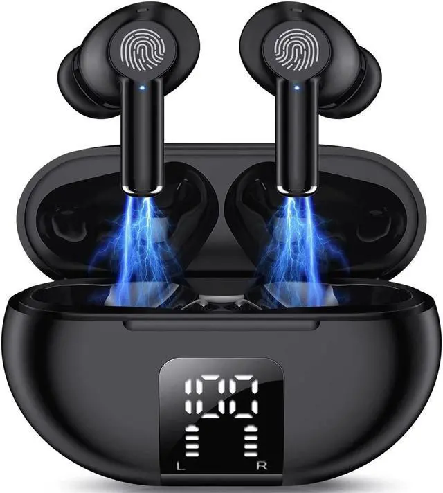 Wireless Earbuds Bluetooth Headphones 60H Playtime Ear Buds with LED Power Display Charging Case Earphones in-Ear Earbud with Microphone for Android Cell Phone Gaming Computer Laptop Sport Black