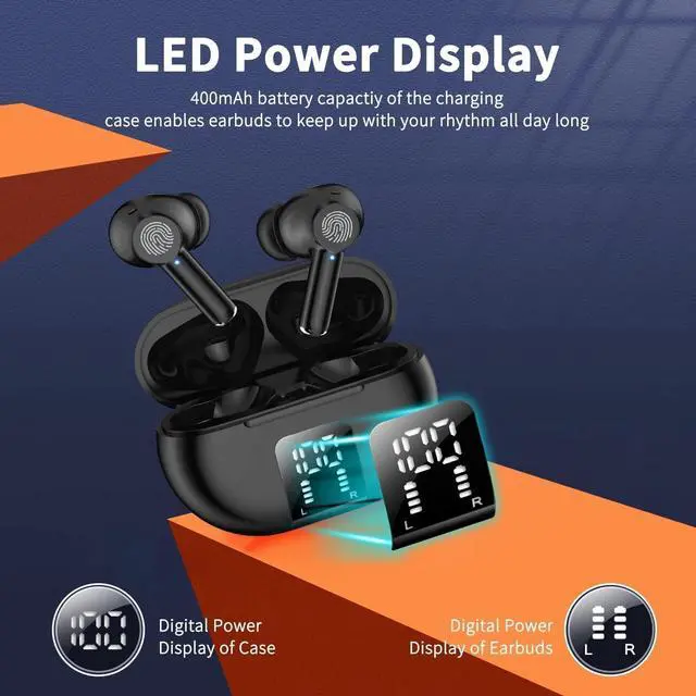 >Upgraded 60H Playtime & LED Power Display: X15 upgraded Bluetooth earbuds with a longer battery charging case, it has 10 hrs more playtime than X15 1st generation. Up to 60 hrs of total listening time in turn, one earbud can be used for 5 hours on one charge. The case can provide extra 5 times the full charge for earbuds.